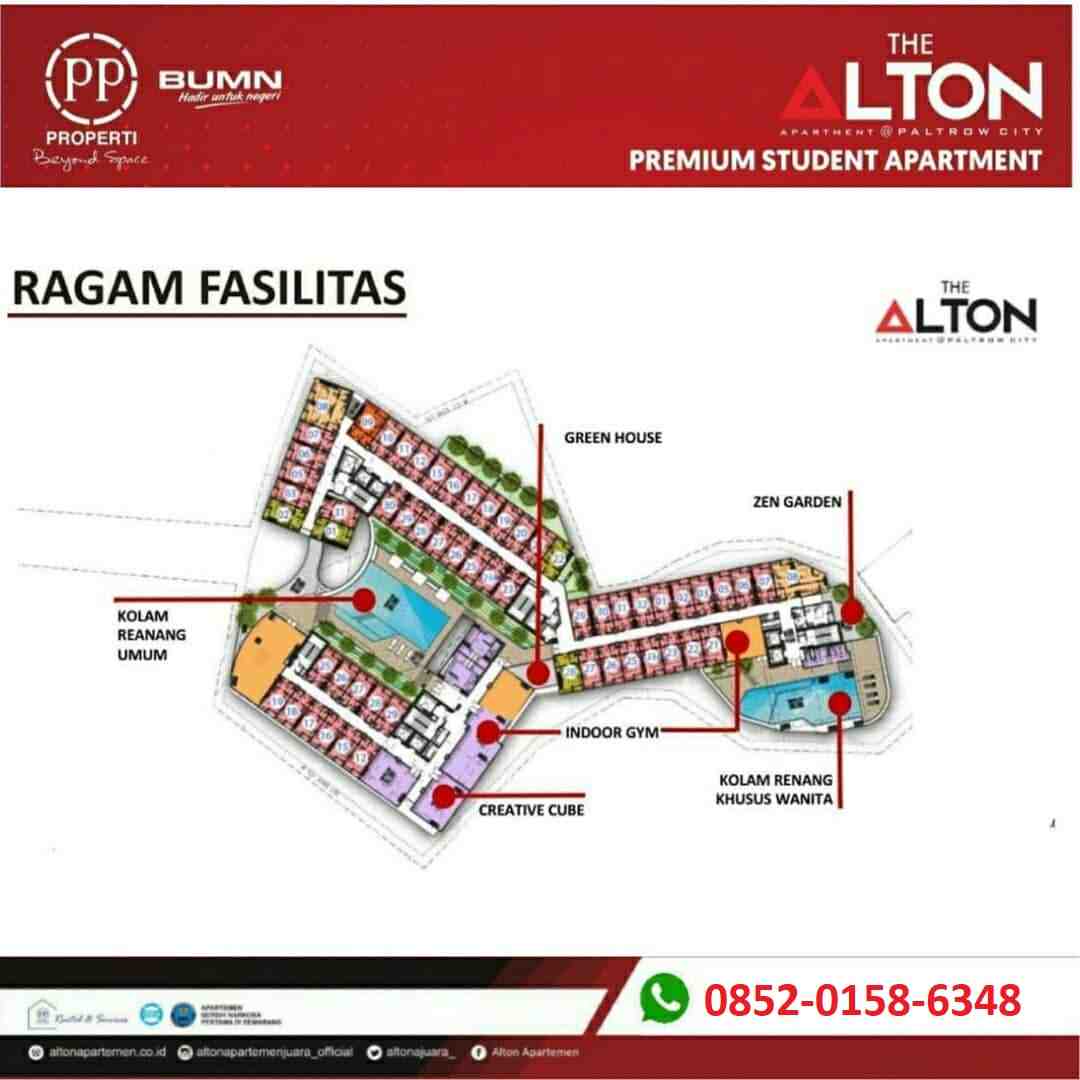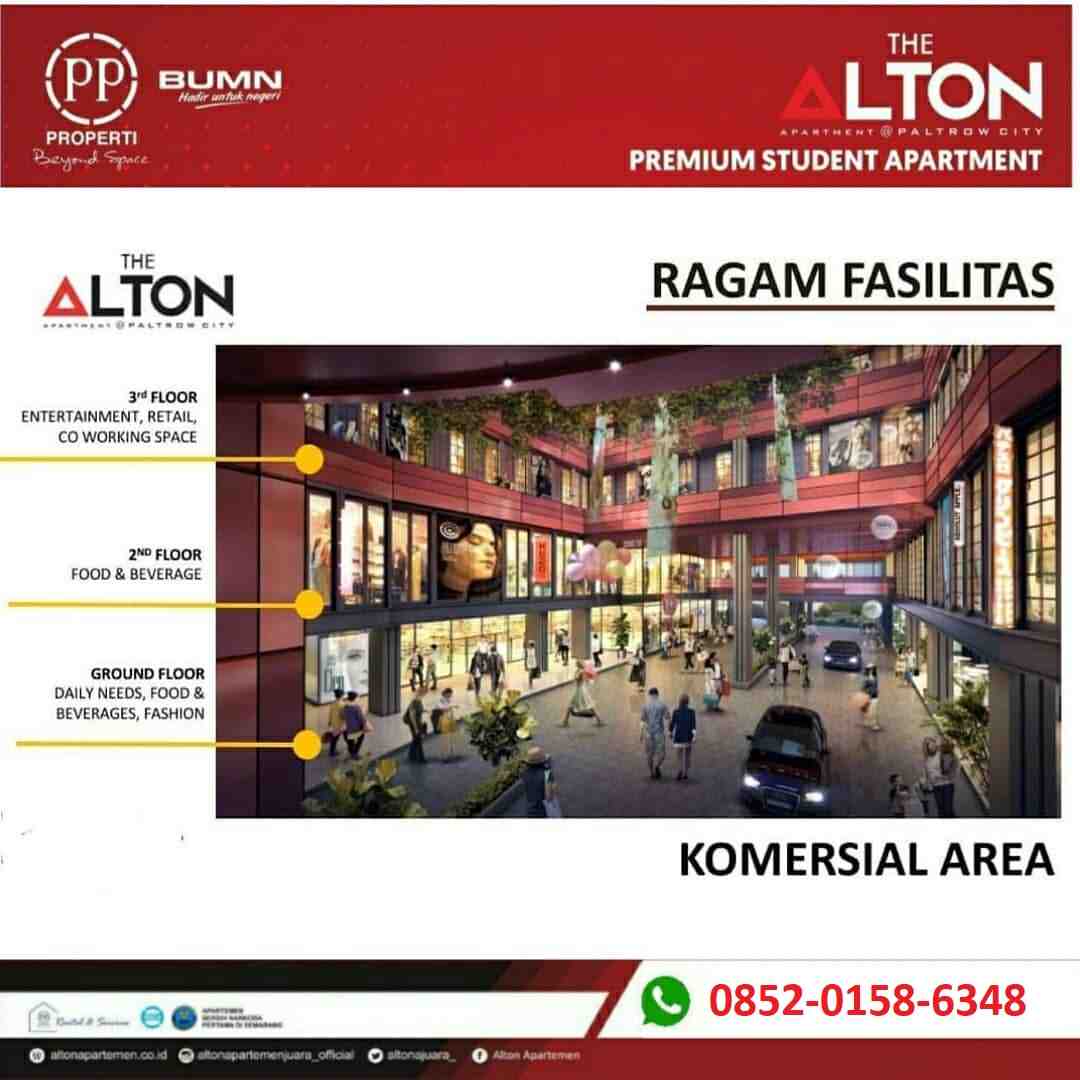 The Alton Apartment merupakan apartemen yang asri, dibangun dengan konsep green building. Bekerja sama dengan UNDIP, PP Properti membangun apartemen yang lebih hemat energi dan ramah lingkungan. Hasilnya hunian yang lebih sehat bagi penghuni, mengurangi limbah dan pencemaran lingkungan.